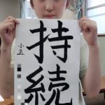 この4月から毛筆を始めた3年生の女の子。 筆は立てる、字の始まりは斜めに押さえる、など、 この半年間で基本的なことを習得してきました。 今月の検定は1枚の半紙に4文字を書く課題で、 難しいかな?と思ったけど、一枚目からこ […] - 令和7年度夏の書道競技会課題決め✎